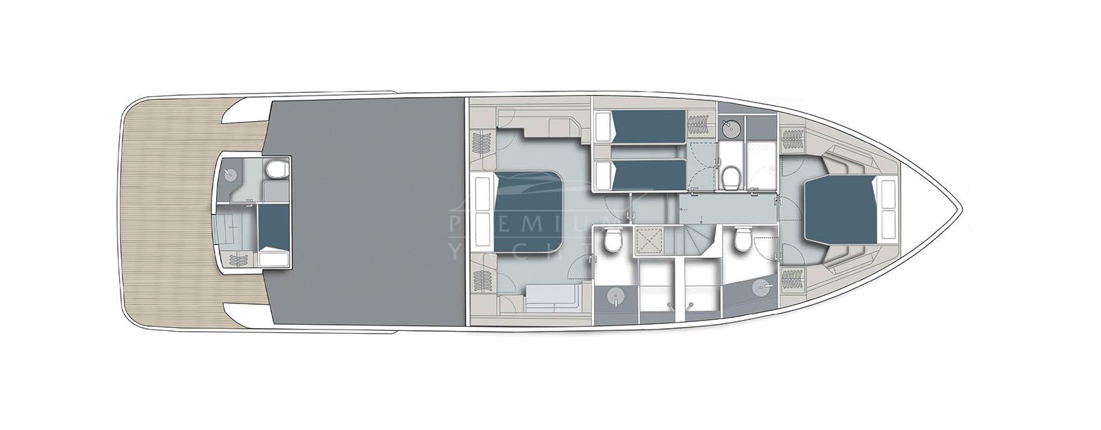 With a hull volume that gives us room for comfort and storage, lines of sight and headroom make the spaces on board more appealing. Her cruising capabilities start with a soft, stable ride, and end far, far away, with a low-speed cruising range that puts distant ports within reach. At the same time, available speed lets owners step up the pace to keep to an itinerary. It’s all here, the Sirena 60.